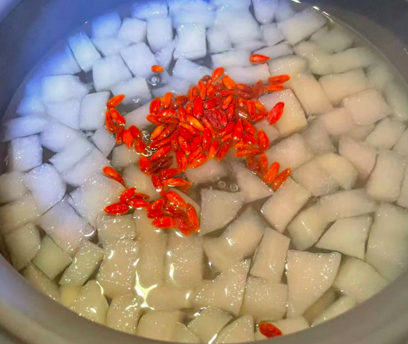 2、枸杞清洗干净,还可以搭配极少的红枣亦然可以的。