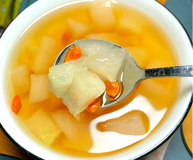 5、把食材的滋味煮出来,终末下入适量的枸杞煮沸即可出锅盛碗享用。