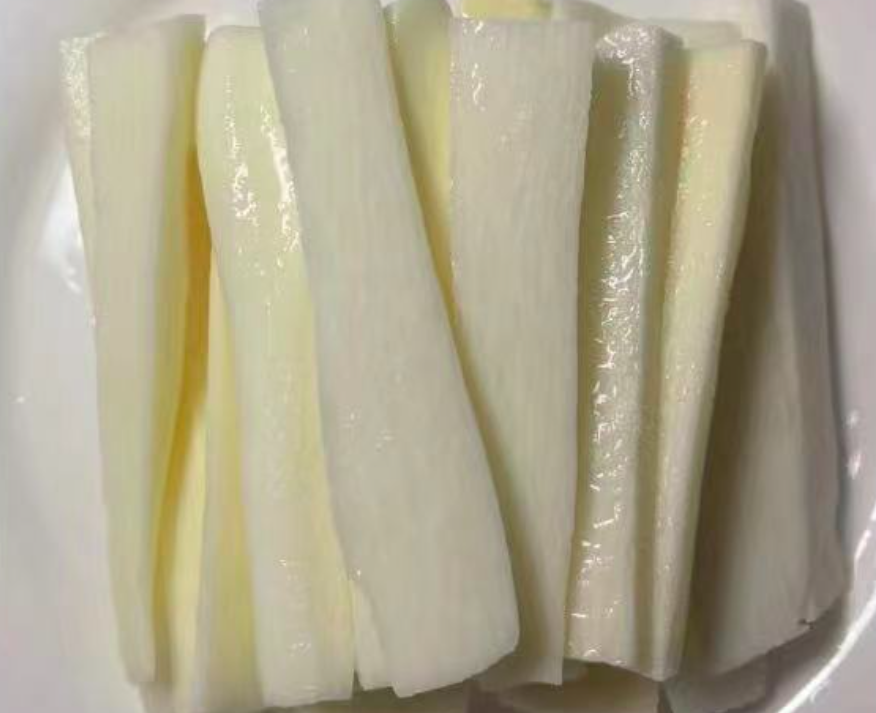 5、白色的山药条里可以搭配一丝绿叶点缀庇荫一下,额外养分颜面更有食欲。
