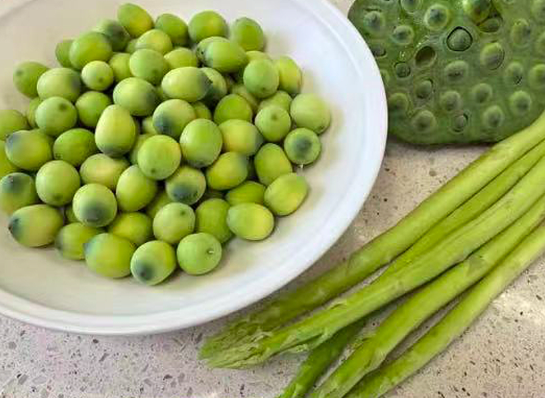1、清新莲子取出来,芦笋责罚好洗净切小段。