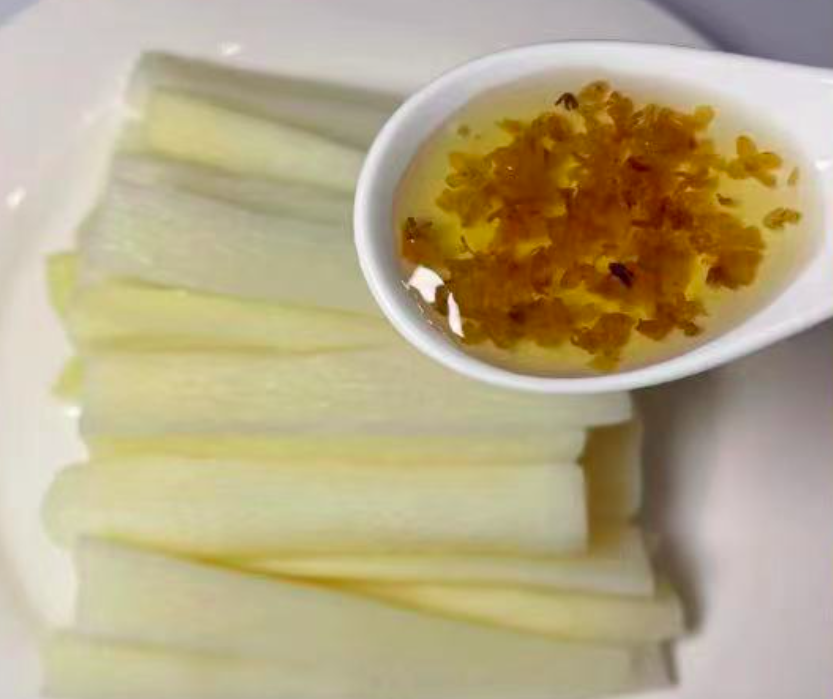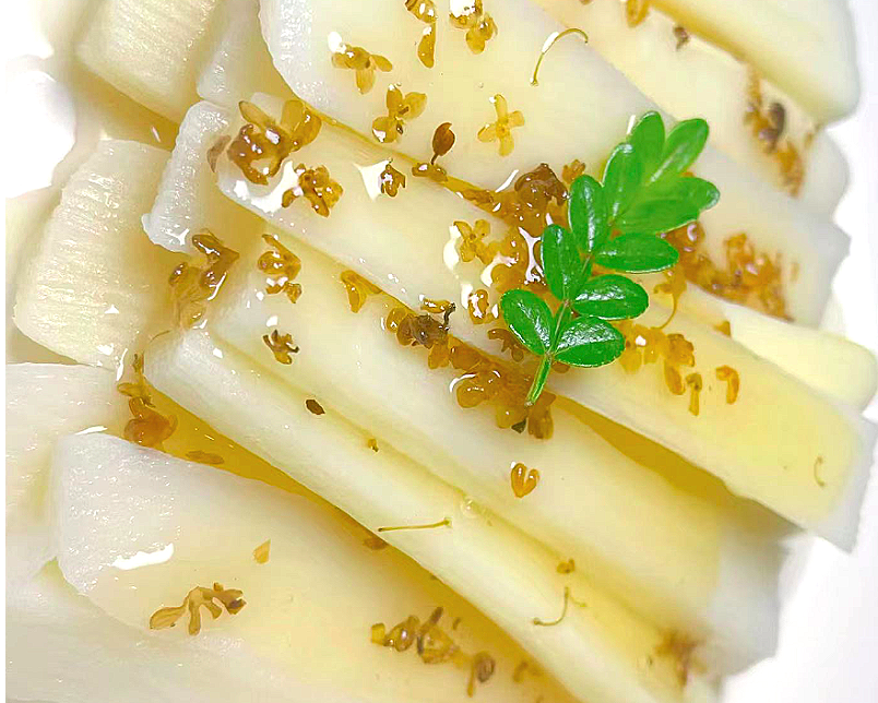 4、出锅淋上适量的桂花酿搭配着吃口感香甜粉糯,吃起来额外棒。