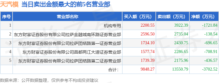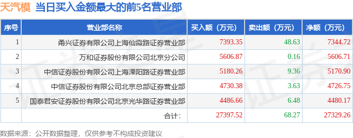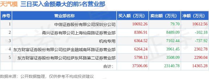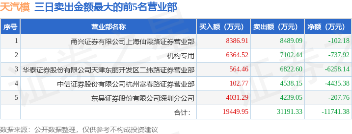 证券之星音问,沪深往还所2024年11月12日公布的往还公开信息涌现,天汽模(002510)因日涨幅偏离值达到7%的前5只证券,通顺三个往未来内云开体育,涨幅偏离值累计达到20%的证券,日换手率达到20%的前5只证券登上龙虎榜。这次是近5个往未来内第3次上榜。