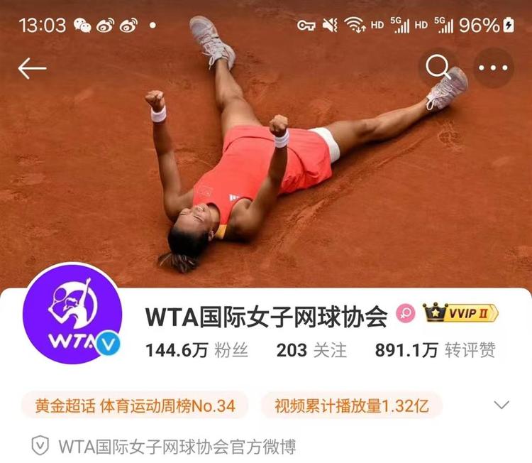 极目新闻记者在意到,WTA的新浪微博账户也更新了封面图,相同展示了郑钦文在巴黎奥运会夺冠时辰的相片。这张相片将成为中国网球发展史上的紧要里程碑。