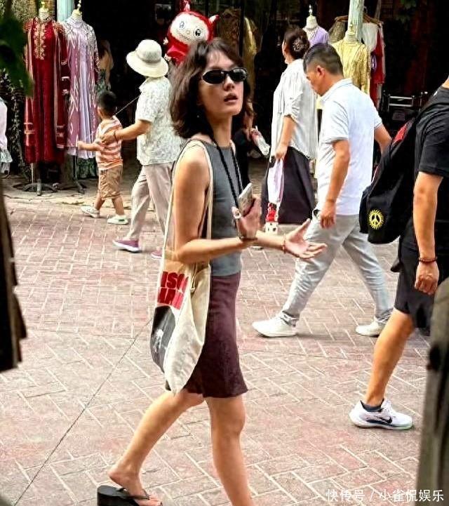 旅客目睹文琪穿戴灰色背心、褐色短裙搭配十元店同款东说念主字拖,在喀什百年老茶室门口端着咖啡晃悠,被网友辱弄像土产货街溜子。