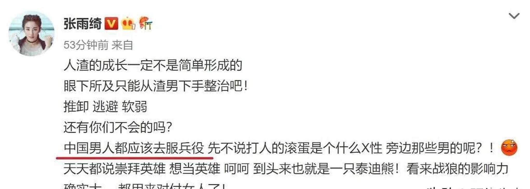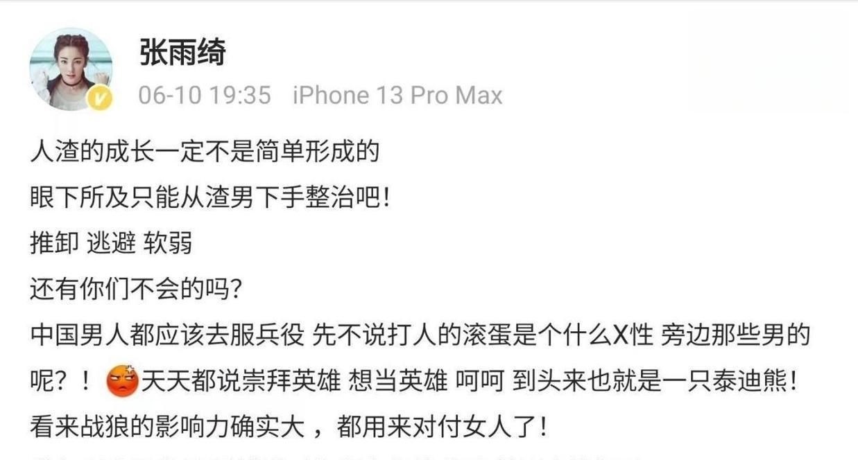 看成以刚直著称的公世东谈主物,张雨绮当然不肯保捏千里默,飞快在酬酢平台上抒发了办法。