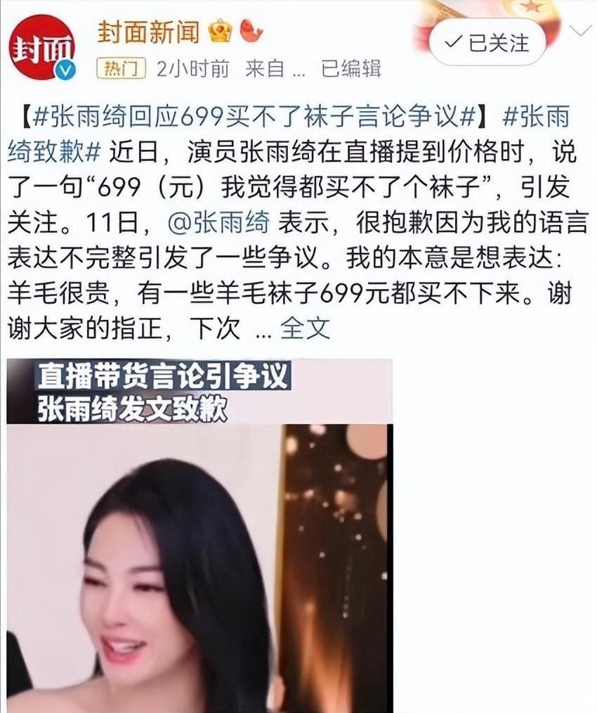 曾经说“699买不起袜子”的骄气已不复存在,目下网友更饶恕她是否靠近经济压力。