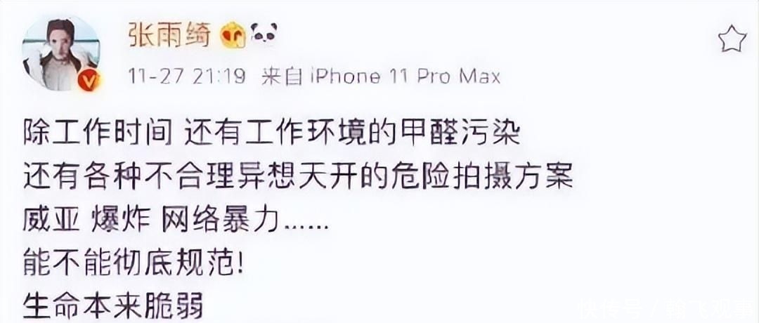 张雨绮却在此时发微博称演员作事劳作,拍摄历程存在安全隐患。