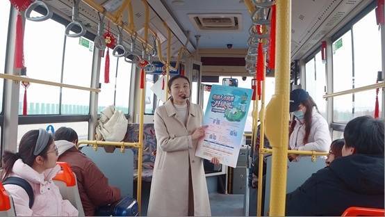 “青马队”宣讲员在公益爱心接驳车上宣讲策略。崇川区委宣传部供图