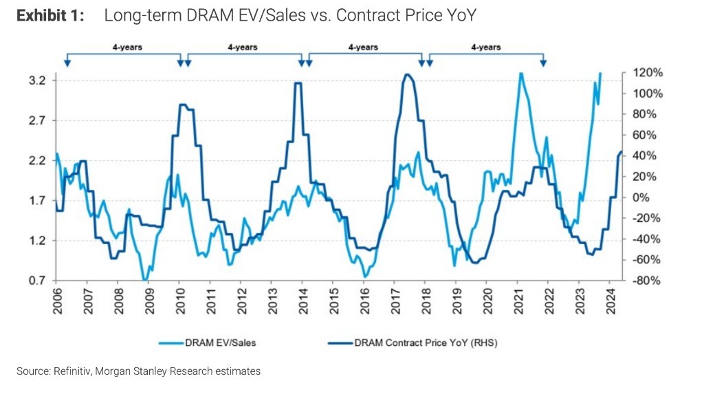 ▲DRAM价钱周期图